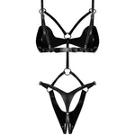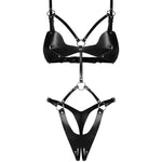 Unleash your inner vixen with the Dame Controle crotchless teddy, where sensuality meets sophistication. Crafted in sleek black eco-leather (100% polyurethane), this bold piece gleams with elegant nickel-free metal accents—silver connectors and studs that lend provocative refinement. A network of adjustable back, waist, and strap details sculpts your curves with precision, delivering a flawless, tailor-made fit. Designed in the EU for comfort and durability, the crotchless silhouette offers luxury and ease, with a smooth, breathable feel against the skin. Perfect for confident self-expression, this statement teddy elevates any luxury lingerie wardrobe with modern, daring charm. Complete the look with the matching pieces for a moment of pure indulgence.