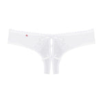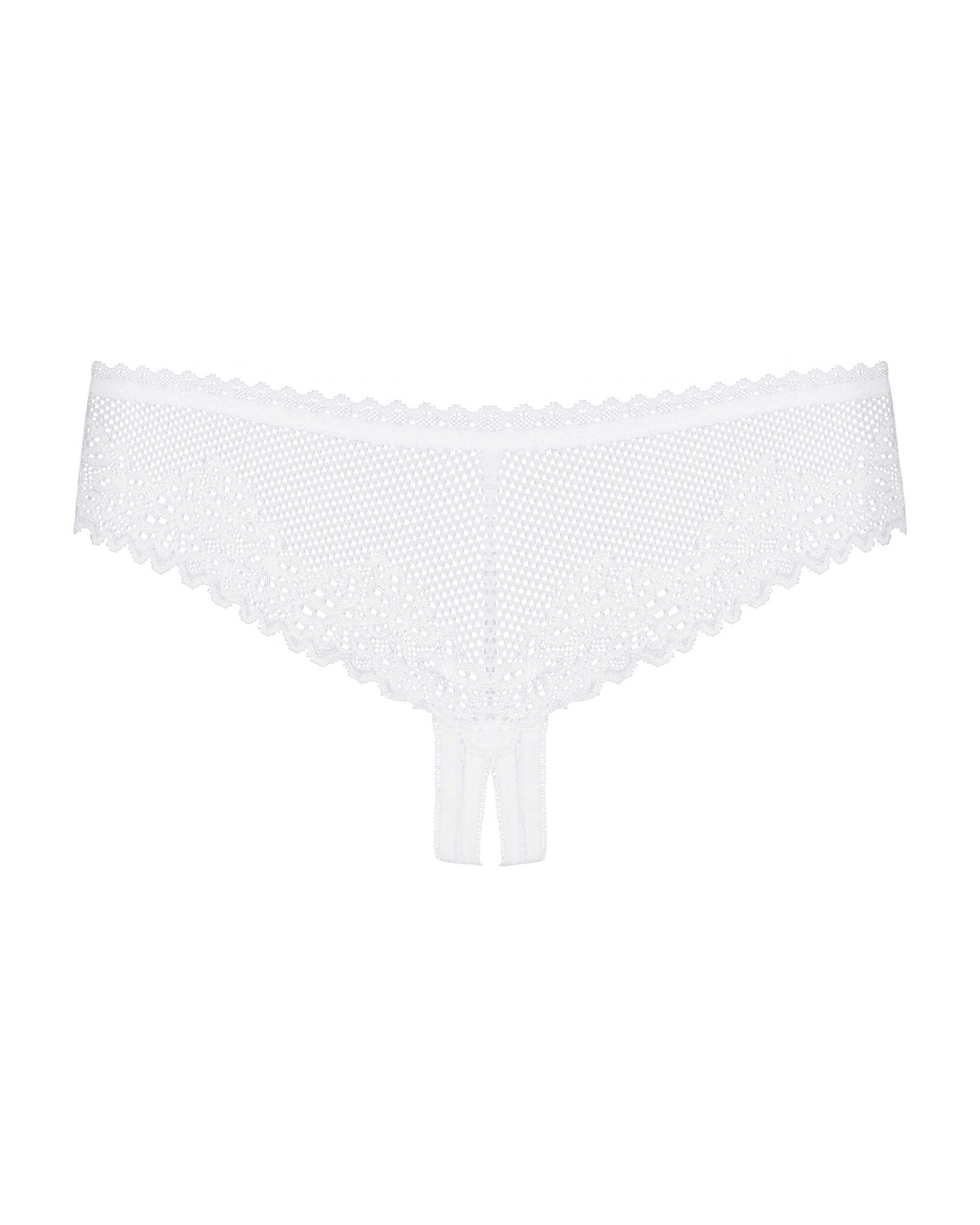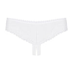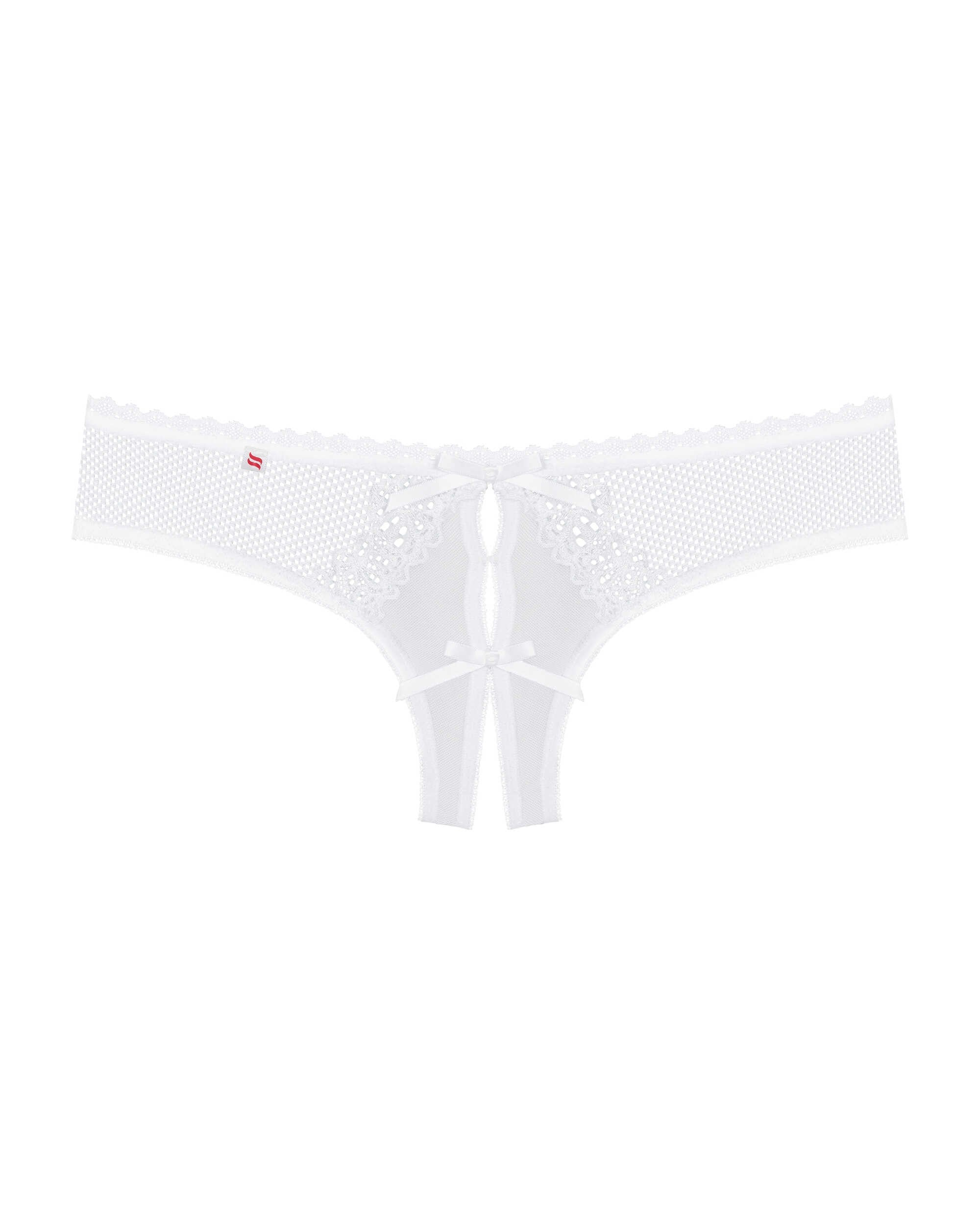 Spicy pleasure meets pristine sophistication with the Alabastra white lace thong. Crafted from a silky polyamide-elastane blend (90% polyamide, 10% elastane), it glides over the skin with just the right stretch for a flawless fit. Delicate white lace, charming bows, and clean lines create a refined, feminine silhouette. The open-crotch design adds a playful, provocative touch, while the soft elastic waistband delivers lasting comfort that moves with you. This luxury lace thong elevates your lingerie drawer, boosting confidence and sensuality in equal measure. Complete the look with the matching lace bra for a moment of pure indulgence.