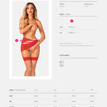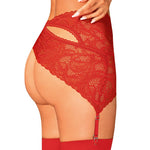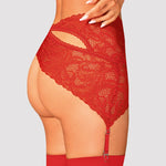 The Atenica red garter belt from Obsessive seduces with an asymmetrical cut and delicate lace, sculpting a feminine, confident silhouette. Adjustable garter straps guarantee a flawless fit, while a refined jewellery detail and tantalising tummy-to-derriere cutouts add irresistible charm. Crafted from a soft, flexible blend of 90% polyamide and 10% elastane, it drapes like silk against the skin—an ideal companion to silk lingerie or a lace bodysuit. Pair with the matching stockings to complete the look and elevate your self-expression in a moment of effortless sensuality. Complete the look with the matching stockings for a moment of pure indulgence.