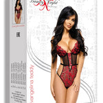 Embody elegance and sensuality with our exquisitely designed Evangelina Teddy in vibrant red and timeless black. This luxurious piece flawlessly enhances your divine femininity, with ruby floral embroidery elegantly draped over delicate tulle. The well-defined underwired cups gracefully uplift your bust, while the daring back design lavishly unveils your allure. Adorned with a decorative crystal-encrusted bow, it adds a captivating touch of charm to your intimate ensemble.
