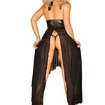 Introduce a measure of provocative allure to your evening with Noir Handmade's exquisite long dress. Expertly crafted from elastic wetlook fabric and elastic mesh, this stunning piece balances the audacious thrill of being seen with the sophisticated charm of luxury lingerie. The triangle top, whispering elegance in its simplicity, can be effortlessly tied around the neck, ensuring a perfect fit. The design takes an adventurous turn with its brilliantly daring cut — the dress stoops front and back, offering tantalizing sneak peeks beneath its elegant facade. Securely rounded off with a corset closure enveloped in the delicate sheen of wetlook design, this dress speaks a sultry language of night-time glamour. Stand out in any soirée as you encapsulate sensuality and confidence in the accordion folds of Noir's statement-piece dress.