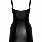 Embrace your audacious side with Noir Handmade's modern dress designed for those who appreciate high-end style with a bold edge. This exquisite garment is crafted from our supple Powerwetlook material which fits like a second skin, enhancing and hugging your curves with refined precision. The striking aesthetic of gleaming black is boosted by the stylish functionality of a central full-length zipper, offering versatility in your style statement. Additional zipper detailing adds an unexpected twist, allowing for a bespoke fit, while a chic metal ring accent at the waist underscores the modern allure of the dress. Intended to be more than just an outfit, this dress is an experience, a testament to fearless sartorial choices. It's ideal for those occasions where leaving a lasting impression is essential. Celebrate your confidence, desire, and bespoke style with this sharp, fitted masterpiece. Infuse luxury into your wardrobe for that unforgettable night out or showcase event, because you deserve nothing but the best.