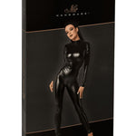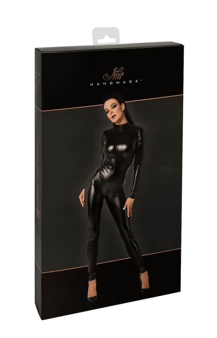 Immerse yourself in the daring allure of this catsuit, skillfully designed by Noir Handmade for the trend-setting lady. This luxurious ensemble, constructed from high-grade Power Wetlook fabric, flaunts a svelte figure-highlighting fit that paints a captivating silhouette.