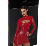 Indulge yourself in the sophisticated allure of Noir Handmade's fitted mini dress. Meticulously crafted from powerwetlook fabric in a classic black hue, this luxurious piece teases with a keyhole neckline that delicately showcases your decollete. Long, slender sleeves and a statement stand-up collar add elements of intrigue, heightening its seductive charm. Subtly fastened at the back with a concealed zipper, the dress provides a seamless silhouette, composed of 76% polyester and 24% elastane with a sleek polymer coating. Embrace your sensuality and assert your confidence with this figure-skimming mini dress. Compliment it with a satin chemise underneath and reveal your exquisite taste in lingerie.