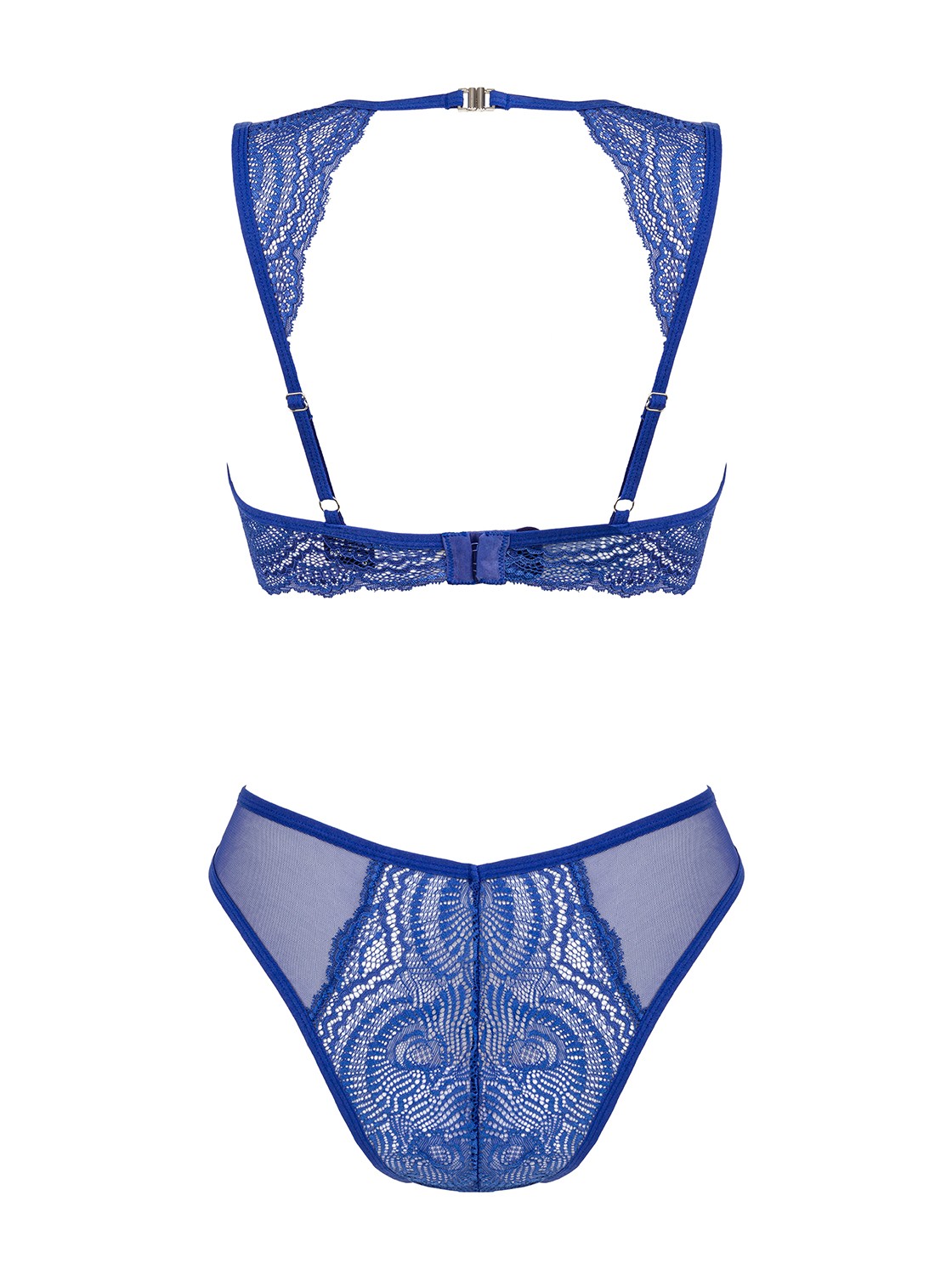 Meet the Giselia set in a unique, energising colour that oozes confidence and sensuality. This luxury lace set pairs a deep, flattering neckline with an underwired bra for a pristine bust silhouette, while high_waisted panties sculpt the waist and lengthen the legs. A delicate jewellery pendant crowns the bust line, a refined detail that catches the light. Comfort meets precision with a neck and back fastening, adjustable straps, and soft, flexible lace for all_day wear. Crafted from a silky polyamide–elastane blend (90% polyamide, 10% elastane), it moves with you—smooth, breathable, and incredibly flattering. Elevate your confidence and express your sensuality with this elegant silhouette. Complete the look with the matching lace thong for a moment of pure indulgence.