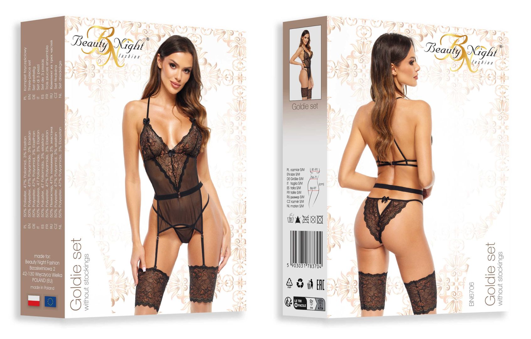 Unveiling the Goldie Set from Beauty Night, our quintessential black lingerie selection exuding an intoxicating blend of allure and sophistication. Artfully crafted, this exquisite ensemble comes in two sizes; S/M (Breasts: 81-91 cm, B-C, Waist: 56-71 cm, Hip: 85-97 cm) and L/XL (Breasts: 91-107 cm, C-D, Waist: 71-91 cm, Hip: 97-112 cm), promising an impeccable fit that celebrates your unique silhouette. The exotic blend of 50% polyester, 47% polyamide, and a hint of 3% elastane material kindles a soft whisper against the skin, enhancing your comfort while keeping the intimacy alive.