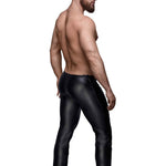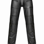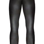 Immerse in the mystical allure of Noir Handmade's unique wetlook trousers, exemplified by meticulous craftsmanship. Constructed from a luxurious blend of 90% polyester and 10% elastane, these garments are not simply clothing, they are a tangible experience. Heat-sealed with a sumptuous polymer coating, they cling subtly to your form, enhancing each curve with a fluid, supple grace. Their captivating wetlook finish, heightened by the striking injection of PVC applications, evokes a sense of considered fashion bravura. A strategically placed front zipper rests to be gently parted, offering an enticing revelation. Savor the distinct yet exquisitely comfortable sensation as these trousers effortlessly conform to your unique silhouette. Pair it with the alluring laciness of a bodysuit, a satin lingerie piece, or a chic bralette for an opulent statement of sensuality and confidence. Herein lies an invitation to embrace your self-expression. Surrender to the seduction and indulge in the noir mystique.