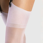 Fashioned from a blend of 90% polyamide and 10% elastane, the Fiore Infini 15 Den White Stocking whispers elegance in every weave. These hold-up stockings, in their spotless white hue, promise an unrivaled fit, delivering an accent of allure with every stride. This piece of luxury lingerie crafted by Fiore highlights the delicate blend of comfort and boldness, crafting an aura of confidence around its bearer. Its design features smoothly echo the design philosophy of a lace bodysuit or a satin chemise — luxurious, inviting, and brimming with self-expression. Conclude your outfit with these stockings for a mesmerizing intersection of sophistication and sensuality, and a moment of indulgence to remember.