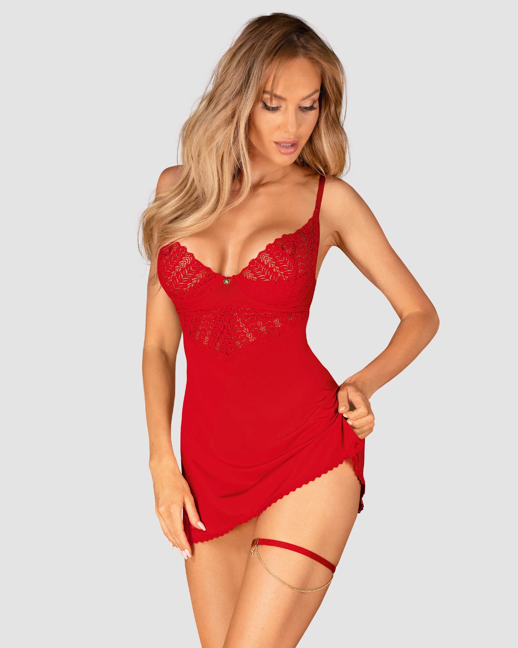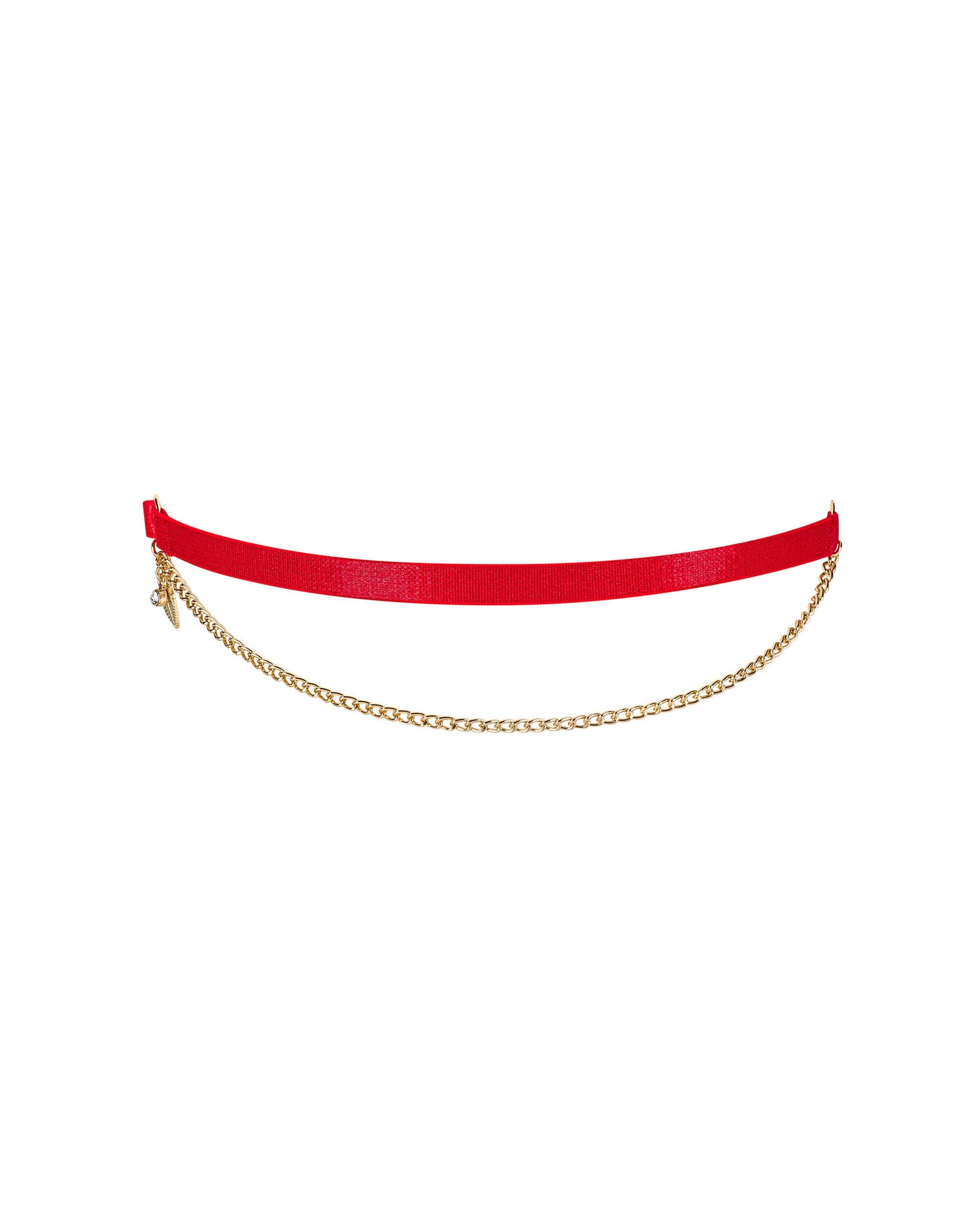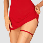 Infuse your intimate moments with the allure of Obsessive's red garter, a sexy touch that commands attention and subtly underscores your confidence. This enticing piece is tailored with an elastic strap ensuring a seamless fit, further embellished by a delicate chain - a detail impossible to ignore.