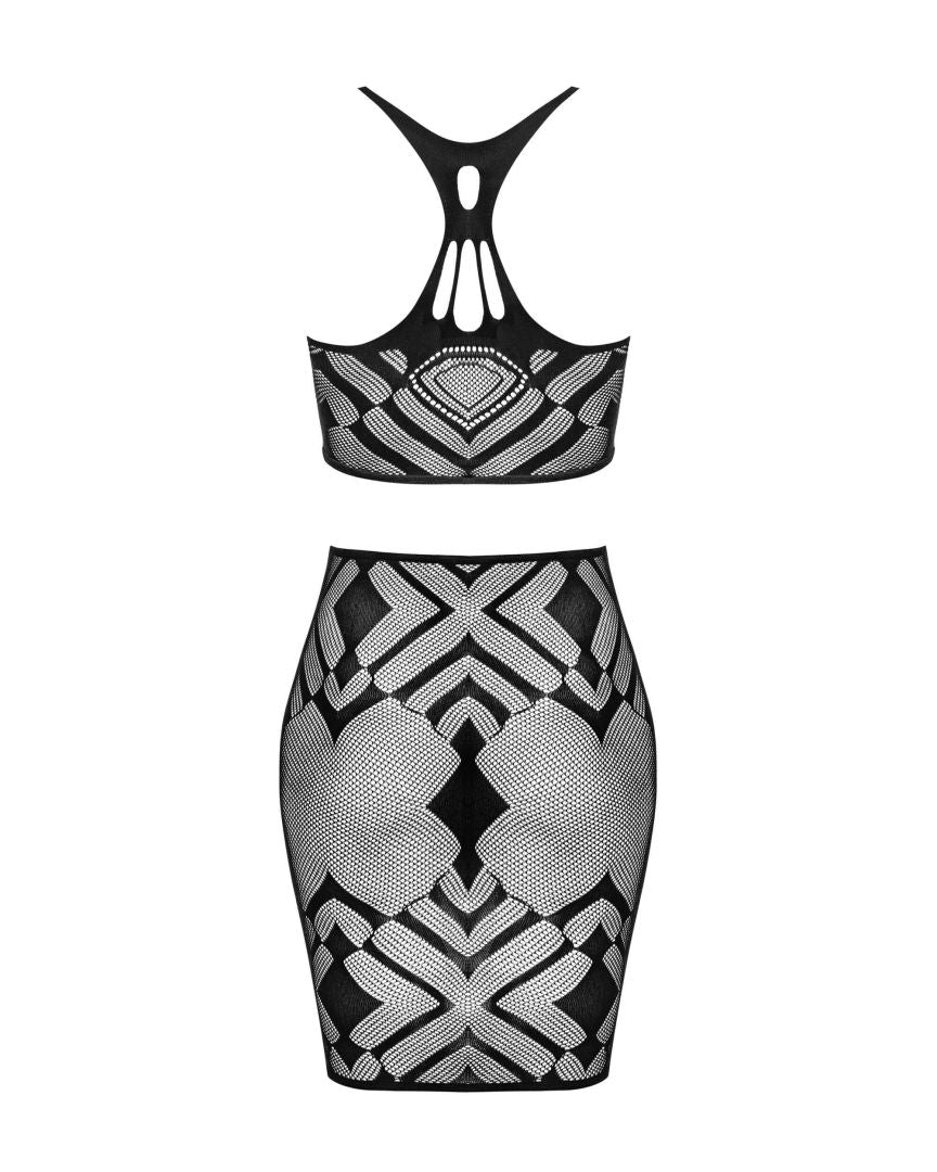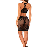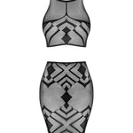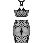 Discover the K101 Top & Skirt, a playful yet refined luxury lingerie set that delivers both a wow moment and everyday comfort. The belly-baring cropped top pairs with a sleek, form-fitting skirt to sculpt a confident silhouette with every movement. A bold geometric motif threads through the design, while an elastic fabric blend—90% nylon, 10% elastane—offers silk-like softness, superb stretch, and all-day comfort. This Obsessive creation feels light on the skin, moves with you, and enhances sensuality without compromise. Ideal for intimate evenings or bold self-expression, it elevates mood and confidence in equal measure. Complete the look with the matching lace thong for a moment of pure indulgence.