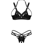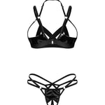 Keira Lise 2-pcs crotchless set invites a bold embrace of sensual confidence. An open-cup bra paired with a daring open thong, finished in a glossy latex-look that adds fearless allure to your silhouette. Adjustable shoulder straps and a neck strap tailor the fit to your figure, while a comfortable front closure sits elegantly between the breasts. Crafted in the EU with a high-shine polyurethane gloss (fabric 1: 100% polyurethane) and a second responsive fabric (fabric 2: 95% polyester, 5% elastane) that moves with you. Nickel-free for a luxurious, skin-friendly touch. This partially cupless design celebrates femininity and self-expression, perfect for lovers of luxury silk-inspired lingerie seeking a modern, provocative edge. Not suitable for children under 3. Complete the look with the matching lace thong for a moment of pure indulgence.