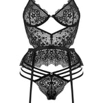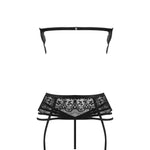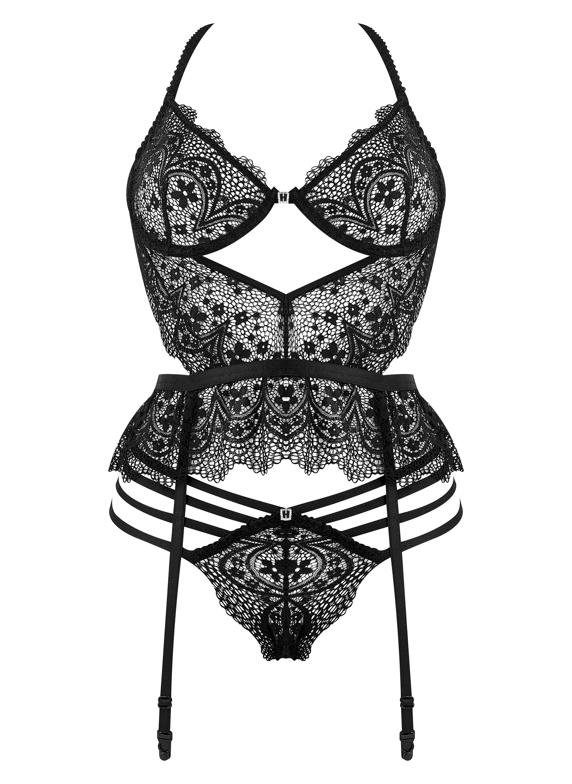 Experience the divine merger of luxury and sensuality with our Lace Temptation Set. Expertly crafted to make you feel tantalizingly stunning, this alluring lingerie set boasts intricately fashioned lace and meticulously sculpted details. These exquisite elements work together to amplify your elegance while whispering a tale of subtlety and intrigue. Crafted with a unique design, adorned with sensual straps and tasteful cutouts, this set presents an audacious flavour to its overall composure. A matching string that accompanies this set elevates the entire ensemble, creating an irresistibly captivating style. This lingerie set can make for an excellent gift, presented in a chic box, ready to wow your partner on any special occasion. Available in sizes fitting S/M, L/XL, and 2XL/3XL, this opulent outfit is fabricated with 85% polyamide, 10% elastane and 5% polyester. Embrace the Lace Temptation Set's promise of sophistication and sensuality, tailoring a tale of desire on your every curve.