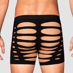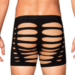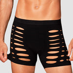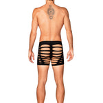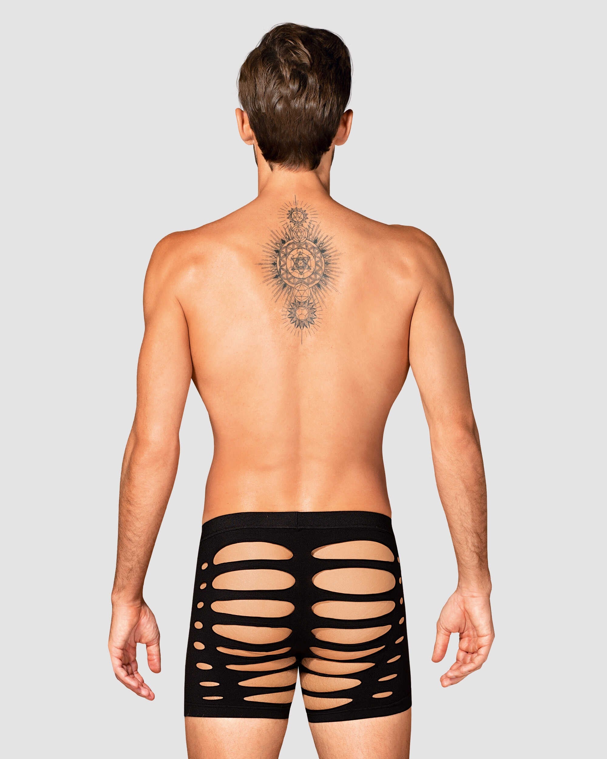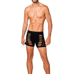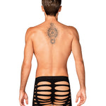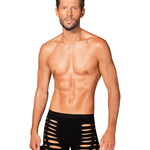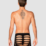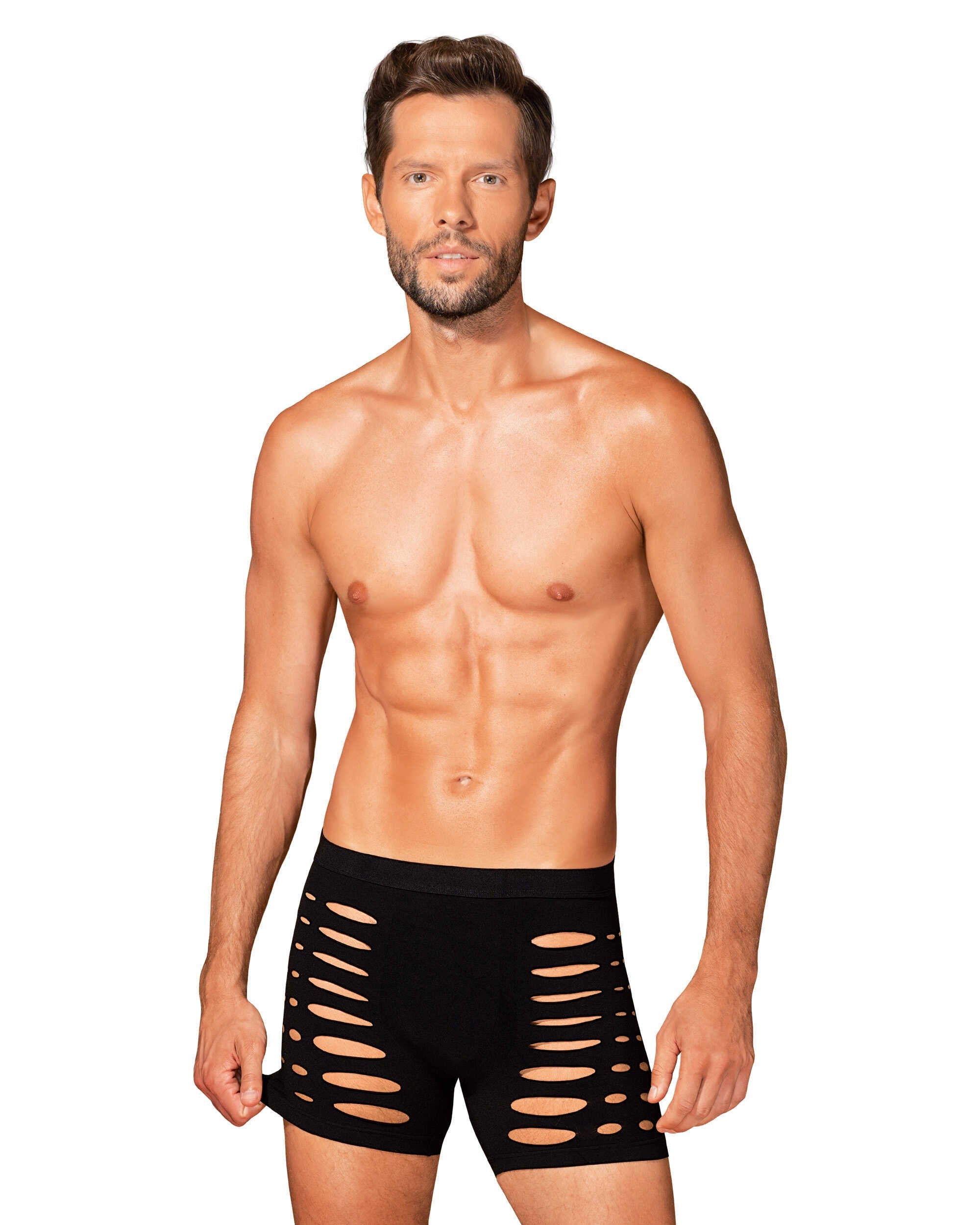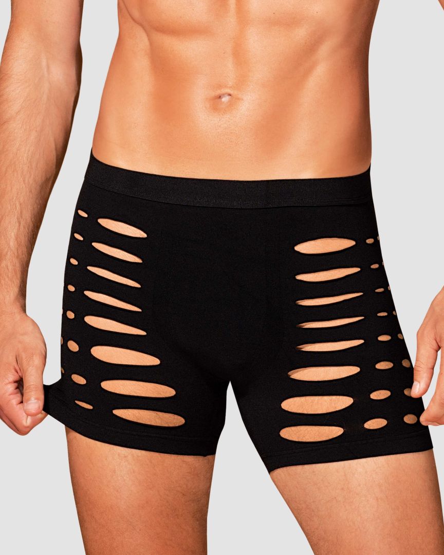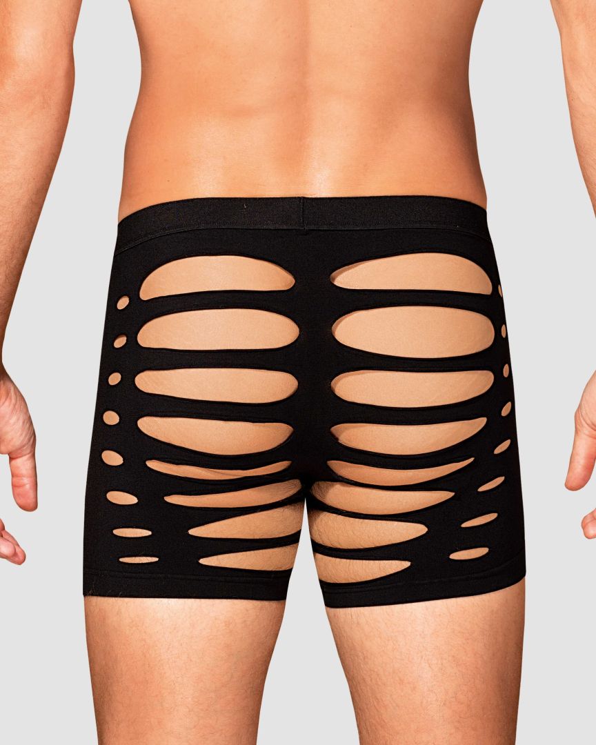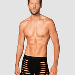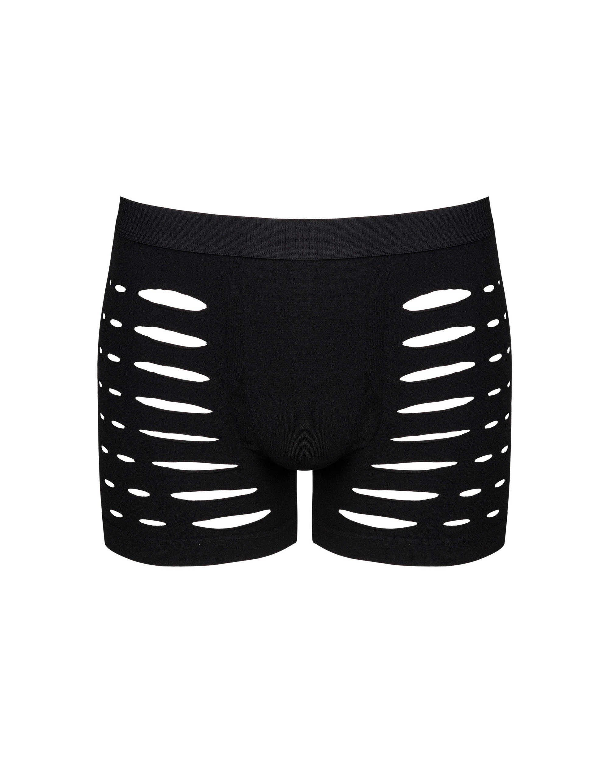 Black M104 boxer shorts fuse warmth with refined allure. Crafted from ultra-stretchy fabric (90% nylon, 10% elastane), they glide over the skin in a second-skin fit that flatters every contour. Strategic cutouts and a silhouette-cut accentuate the masculine lines, offering a hint of daring elegance without shouting. These are luxury men's underwear that blend sensuality with everyday comfort, preserving warmth on cooler evenings while delivering lasting shape and breathability. Designed by Obsessive to empower confidence and self-expression, these boxers invite intimate, playful moments. Complete the look with our coordinating pieces for a moment of pure indulgence.