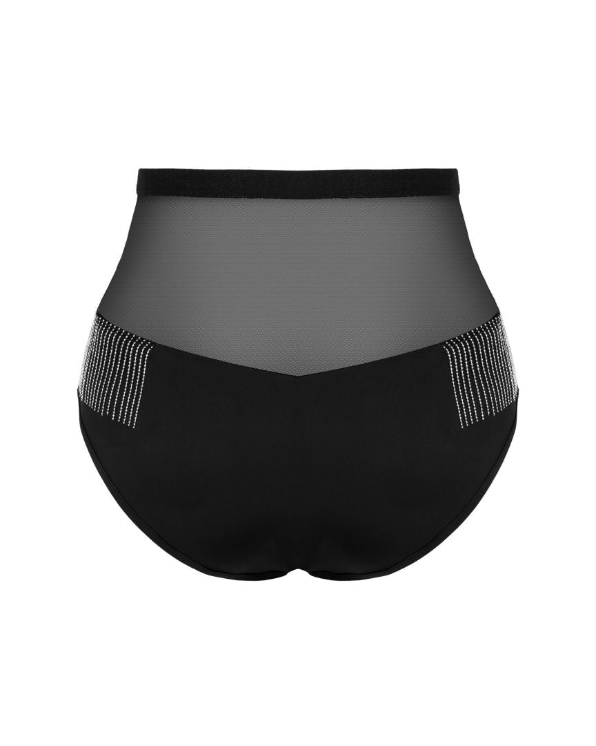 From the Milladis collection, these high-waisted mesh panties are a jewel of luxury lingerie. The cut is irresistibly sexy, with a delicate front pendant and rows of silver beads along the hips that trace your curves with refined charm. The mesh gently reveals the body and hugs the tummy, while the fabric - soft, flexible 90% polyamide, 10% elastane - offers a silky, silk-tinged feel that moves with you. Paired with gloves and nipple covers from the same line, you will exude bold, celebrity-level confidence. Complete the look with the matching lace thong for a moment of pure indulgence.