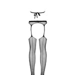 Elegant and playful, this bodystocking fuses a garter belt, stockings, and a sultry top into one refined silhouette. Crafted in spicy mesh, it feels silk-soft against the skin and moves with you thanks to 90% nylon, 10% elastane for a flawless, flexible fit. Devilish straps wrap around the belly, while neck- and back-binding provides secure, sculpted shaping. A slimming vertical strap runs along the back of the stockings to lengthen the line and heighten allure. Luxurious, soft, and effortless—the piece whispers confidence and self-expression, perfect for silk lingerie-inspired looks or layered with a luxury bralette or satin chemise. Complete the look with coordinating pieces for a moment of pure indulgence.