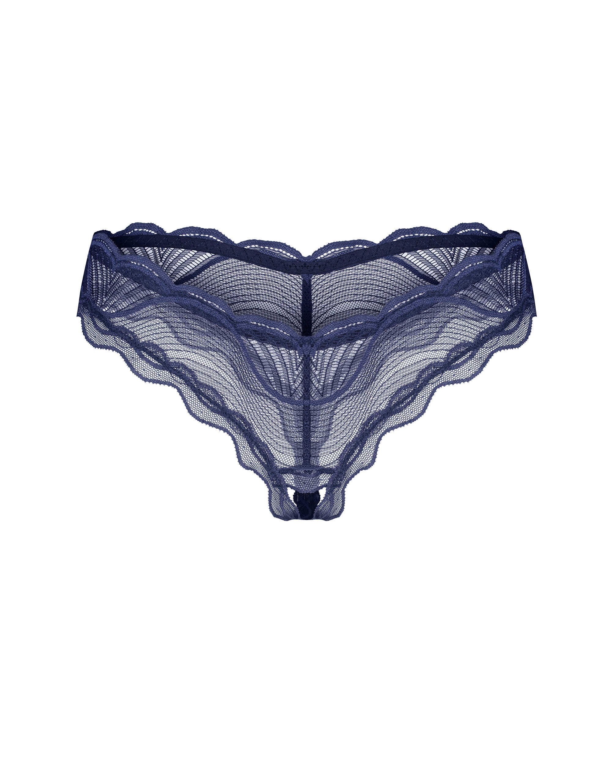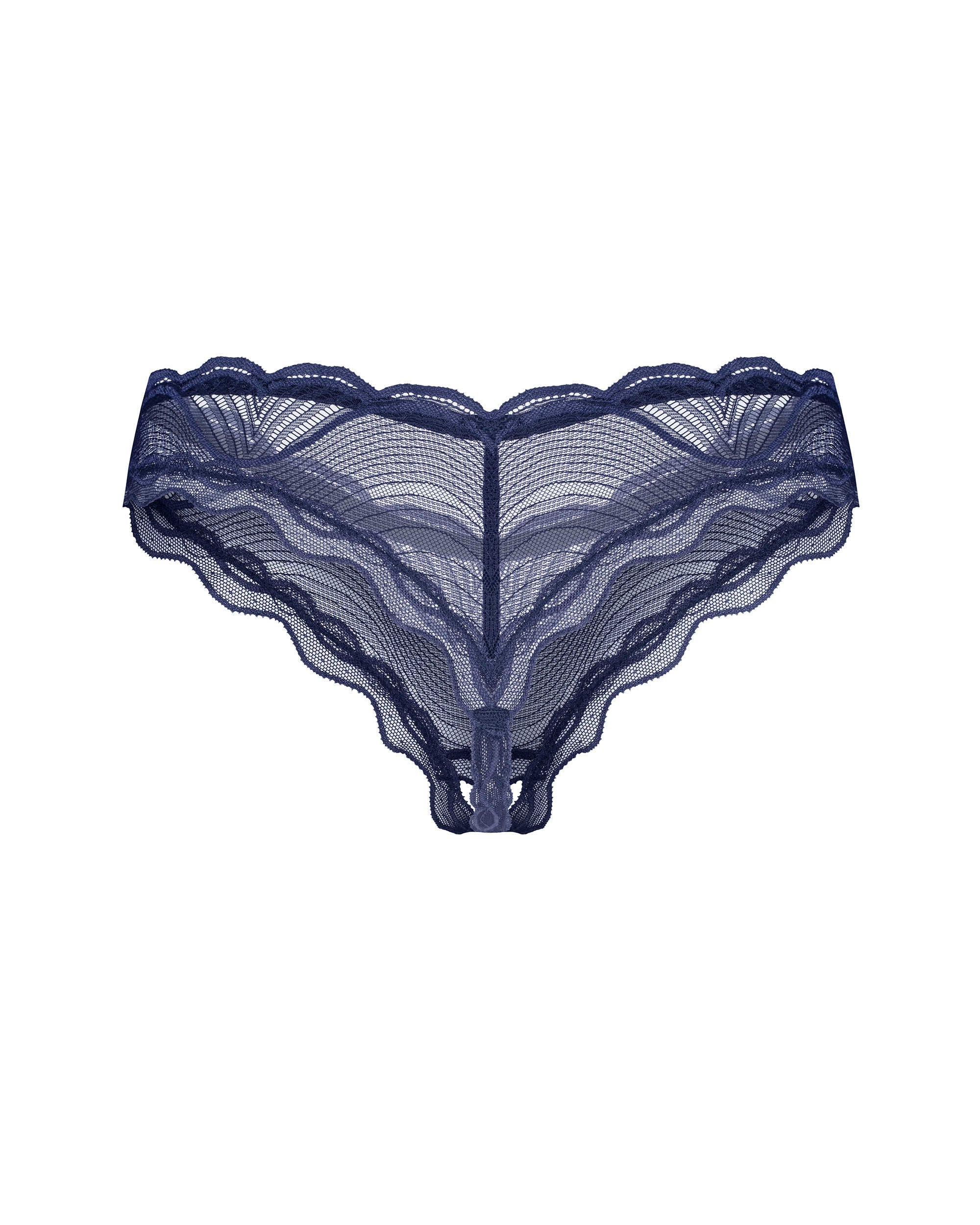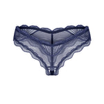 Elevate your intimate collection with the Nightly Blue crotchless thong, a refined blend of modern elegance and uncompromised comfort. In a rich navy hue, a lightweight fabric glides over the skin, its intricate patterns catching the light with every movement. Delicate scalloped edges trace the silhouette, while the daring open-crotch design invites a sensuous touch. Made from 90% polyamide and 10% elastane, it moves with you, offering a second-skin feel and nickel-free comfort. Expertly designed in the EU, this luxury thong speaks to silk-lingerie sensibilities with contemporary craftsmanship. Slip into Nightly Blue and let confidence radiate with every wear. Complete the look with the matching lace thong for a moment of pure indulgence.