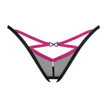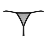 Novenes’ crotchless thong harmonizes a timeless silhouette with a daring, modern edge. A black base with royal purple stripes glides across the skin in a sumptuously soft, translucent fabric—pure luxury lingerie that hugs and flatters the form for confident, sensual appeal.
