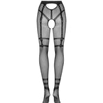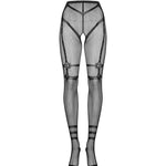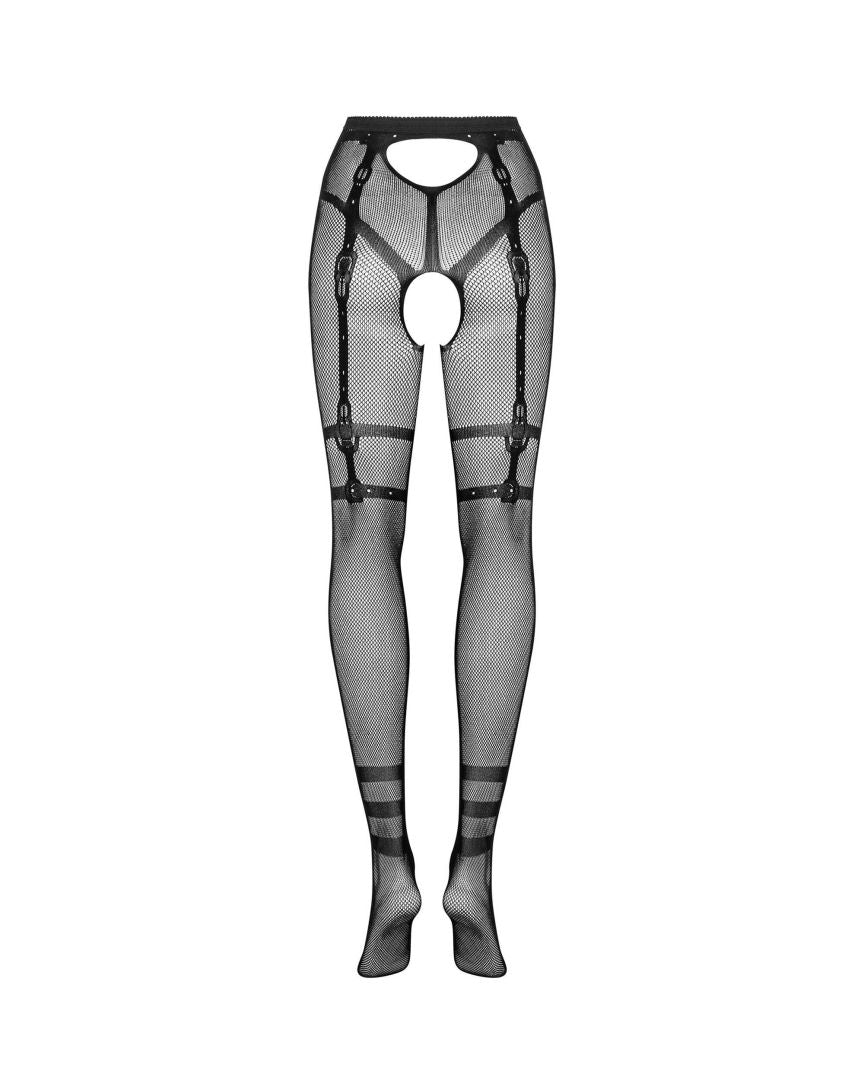 S123 Tights from Obsessive bring daring refinement to your wardrobe. These sexy black tights feature an open-cut design with a bold belt-buckle motif that travels along the leg, delivering a couture-inspired focal point. The highly elastic fabric hugs your curves and adapts to every movement, ensuring a confident, seamless silhouette.