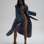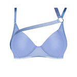 Shaderi bra Ñ a minimalist luxury in mesmerizing blue. Crafted from a premium polyamide-elastane blend, it feels cool, smooth and whisper-soft on the skin. Oval-shaped, underwired cups sculpt with lift, while a double layer of fabric adds softness and support.\n\nAdjustable diagonal back strap, fully adjustable shoulder straps, and a secure hook-and-eye fastening tailor the fit to you. Wide straps frame the neckline and back, creating a refined, contemporary silhouette. Silver hardware with nickel-free components finishes the look. 94% polyamide, 6% elastane; designed in the EU. This blue underwired bra brings silk lingerie-inspired elegance to your collection, elevating confidence, sensuality, and self-expression. Perfect as a luxury bralette under sheer tops. Complete the look with the matching piece for a moment of pure indulgence.