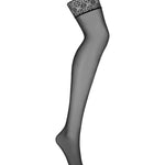Indulge in these sensual stockings from Obsessive. A super-soft mesh pampers your legs, while seductive geometric lace graces your thighs for a look that's both refined and irresistibly tempting. Made from 85% polyamide and 15% elastane, they offer soft, elastic comfort, though not self-supporting—pair with a garter belt or your favorite lingerie set for a flawless fit. The elegant style enhances any ensemble, from silk lingerie to lace bodysuits, elevating confidence and sensuality with every step. Ready to feel extraordinary? Complete the look with the matching lace thong for a moment of pure indulgence.