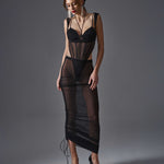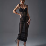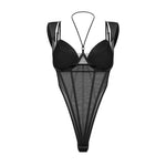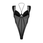 Introducing the Sibilie teddy from Obsessive ExquisiteÑa deep-black mesh bodysuit that drapes the body with elastic mesh, decorative seams, and a slightly elastic double-layer tulle bust, delivering a silk lingerie-inspired, silk-like drape. Padded underwire cups, adjustable straps, and a neck-hugging neckline fuse support with subtle seduction, while wide, non-standard shoulder straps and a slender silhouette elongate the legs and hint at the hips. A three-stage crotch fastening and nickel-free hardware promise comfort from first wear to night-long enchantment. Crafted in the EU from 94% polyamide and 6% elastane, this luxury lingerie piece moves with you and feels exquisitely smooth. Not suitable for children under 3 due to small detachable parts. Elevate your silhouette and self-expression with this refined teddy; complete the look with a coordinating piece for a moment of pure indulgence.