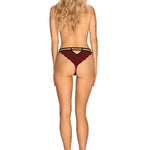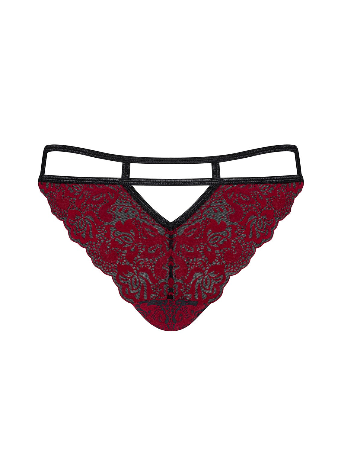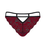 Ignite the flames of desire with Obsessive's Sugestina Panties - a bold and sensual fusion of lavish burgundy velvet and chic strapping. Come closer and discover an artful ensemble that commands the floor in your innermost sanctum. Elegance and boldness mesh seamlessly in this exquisite design - an unusual interplay of straps accentuating the feminine curves while a daring triangular cut-out lends it an audacious edge. Created for the connoisseur of allure, the feel of our blissfully soft, supple fabric (comprising of 94% polyamide and 6% elastane) against your skin will seduce and bewitch. Slip into the Sugestina Panties and reveal the unrestrained seductress within. Draped in luxury, your body transforms into a canvas of confidence and sensuality. Pair them with a luxurious bralette or svelte satin chemise for a symphony of splendour. A touch of finesse, a dash of audacity - the final stroke in your masterpiece of glamour.
