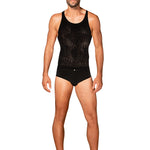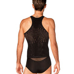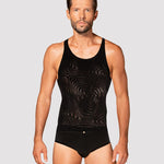 Black luxury for the modern silhouette. This sexy men's tank top from Obsessive is cut to flatter with a contemporary line that heightens confidence. The ultra-flexible knit glides over the skin, delivering unrestricted movement and a smooth, second-skin feel. Intriguing geometric motifs trace the fabric, a discreet detail that catches the eye. Crafted from a breathable polyamide-elastane blend (90% polyamide, 10% elastane), it offers a cool touch, lasting shape, and all-day comfort. Whether worn solo or beneath a shirt, this piece elevates evenings with subtle sensuality and refined ease. Complete the look with the matching luxury loungewear for a moment of pure indulgence.